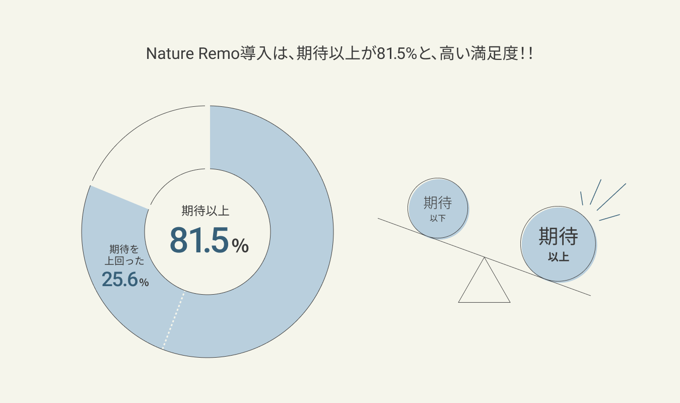 Nature Remo導入の満足度は、81.5%が期待以上だったと回答!