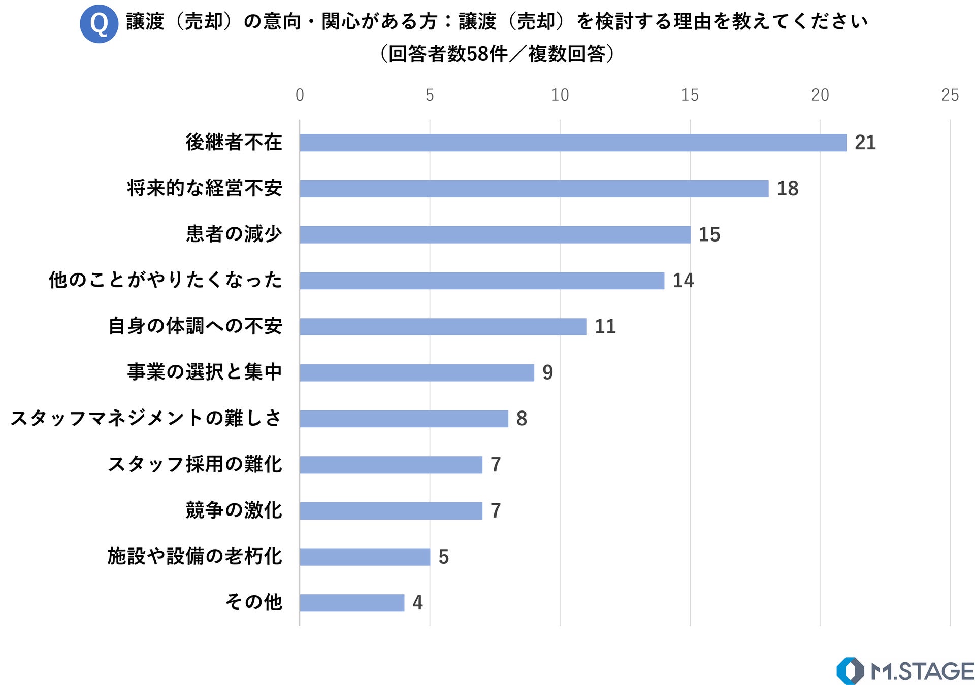 5. 医業承継で譲渡(売却)を検討する最も大きな理由は「後継者不在」
