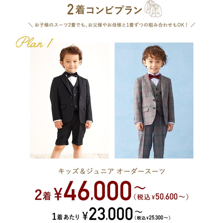 定番人気の「フォーマルオーダースーツ」、2022年9月から全店舗対応となった「キッズ&ジュニア」や、贈り物として大変人気な「ギフト券」の2023年最新情報をご紹介いたします。