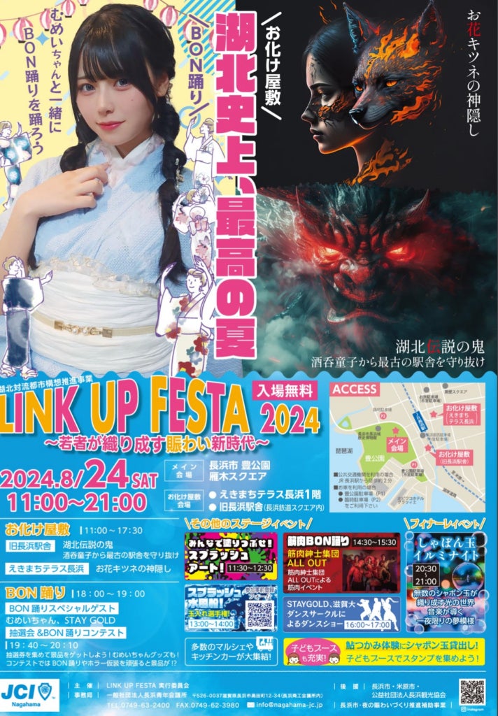 「LINK UP FESTA 2024」は、滋賀県長浜市で開催される一般社団法人長浜青年会議所主催のイベントです。今年のテーマは「若者が織り成す賑わい新時代」で、BON踊りで地域の活性化を目指しています。