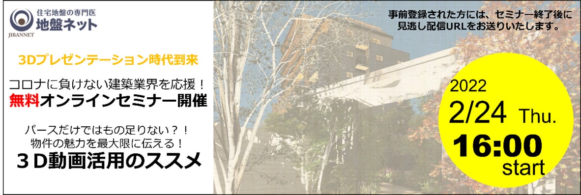 地盤ネットホールディングス株式会社(所在地:東京都新宿区、代表:新美輝夫、以下、地盤ネットHD)の子会社、地盤ネット株式会社(東京都新宿区、代表:荒川高広、以下、地盤ネット)は、下記の通りWEBセミナーを2週連続で開催いたしますので、お知らせいたします。