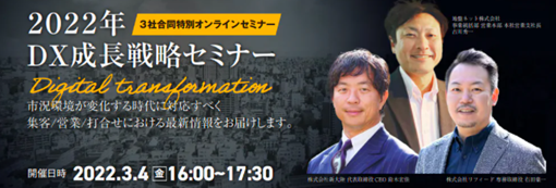株式会社リフィード様(本社所在地:福岡県福岡市、代表:波風 小百合)株式会社新大陸様(本社所在地:静岡県浜松市、代表:鈴木 宏佳)と地盤ネットでの3社合同セミナーを開催いたします。