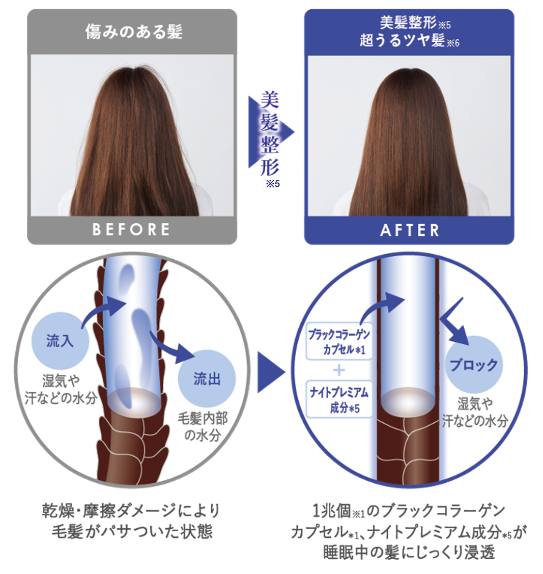 濃密カプセル処方が睡眠中の髪に浸透ケアします。