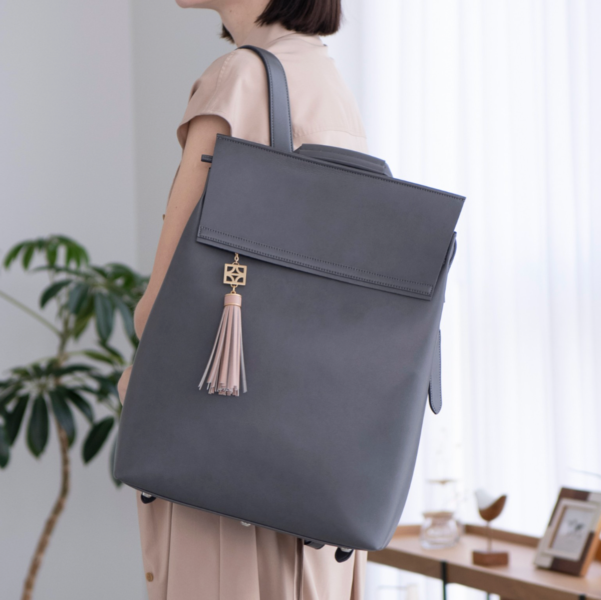 PC収納や背面ポケットなど高い機能性とタイムレスなデザイン性を両立させ、実用的でエレガントなリュックを実現しています。