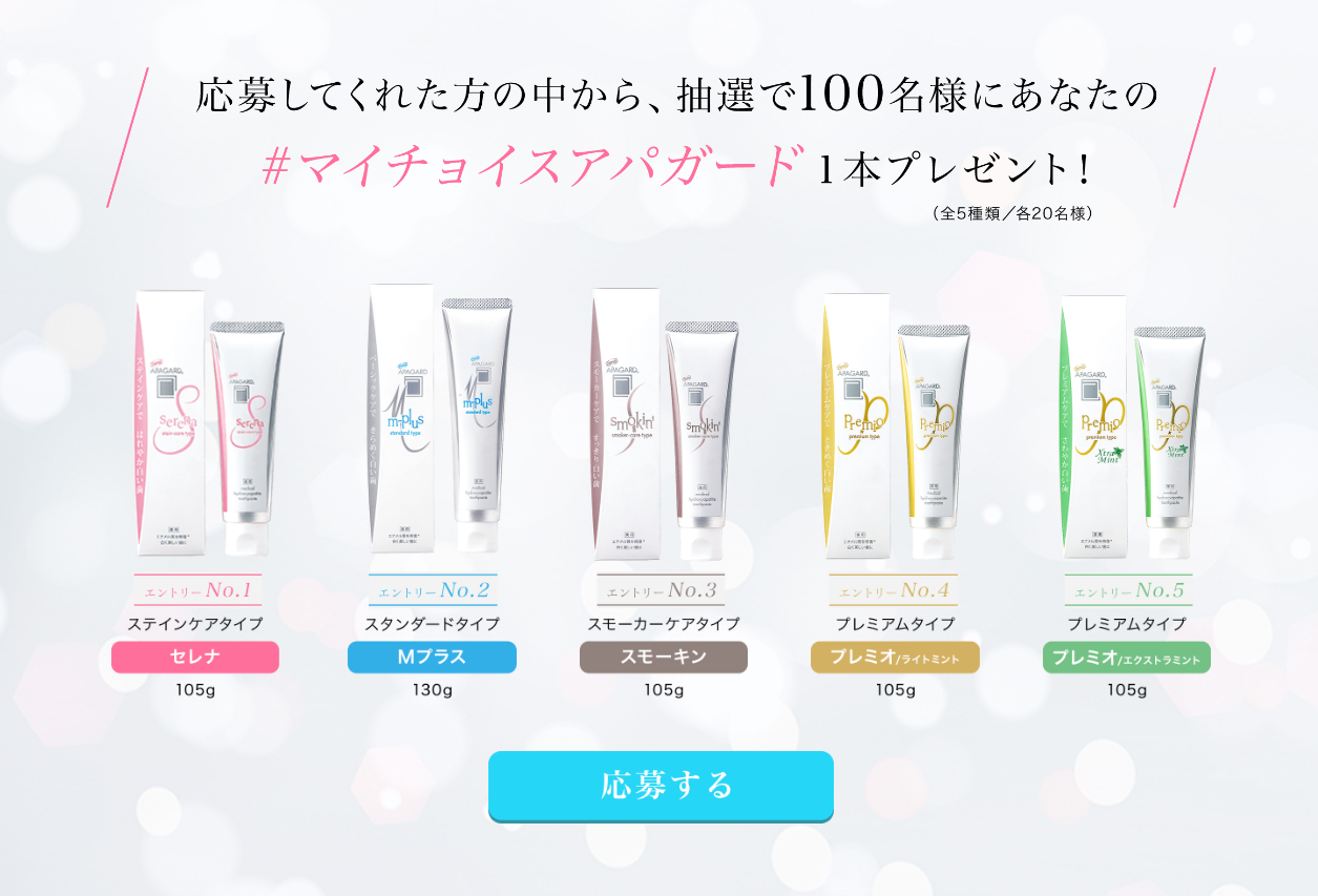 【賞品/当選数】 アパガード現品全5種 各20名様/合計100名様