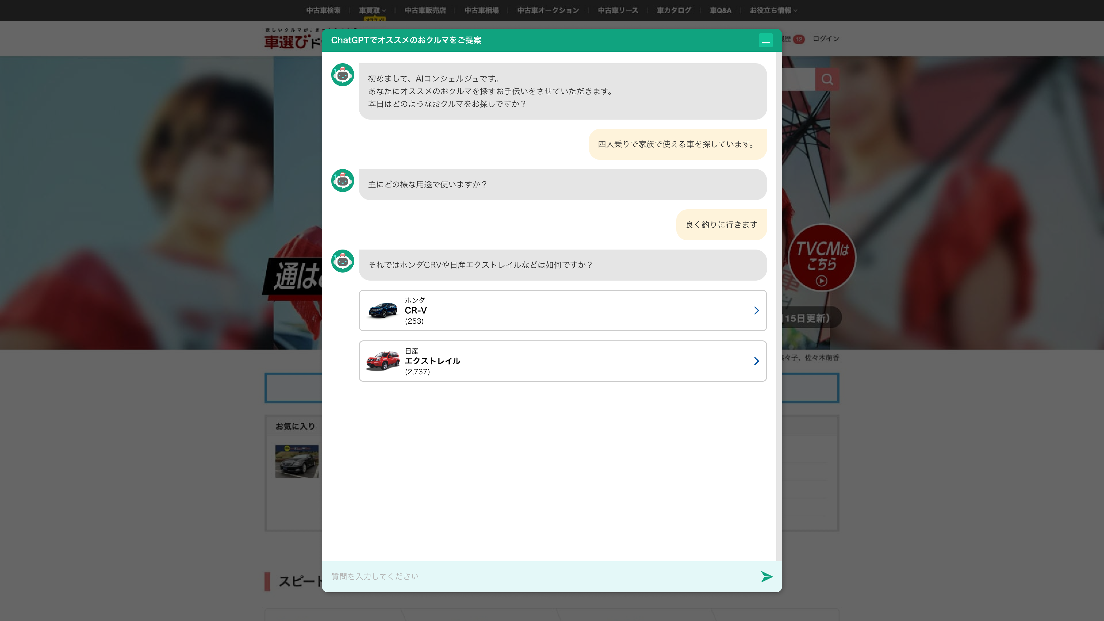 車選びドットコムがChatGPTと連携!業界初の新機能で最適なクルマ選びをサポート