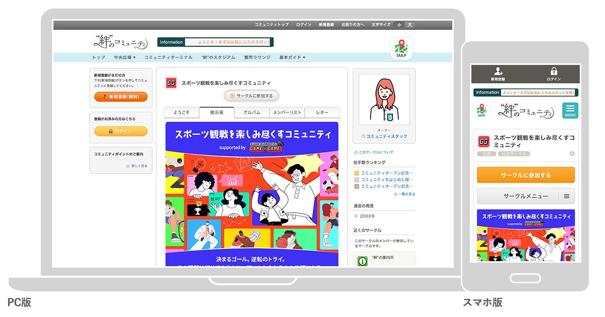 「スポーツ観戦を楽しみ尽くすコミュニティ」が開設された「“絆”のコミュニティ」は2020年1月にオープンした、クオンが運営するオンライン上のファンコミュニティプラットフォームです。60以上の企業・自治体と200万人を超える生活者が集い、“絆”をテーマにした交流や、参画企業・団体のコラボレーション企画、双方向コミュニケーションから生まれる生活者の声をもとにした価値共創のイベントなどを実施しています。