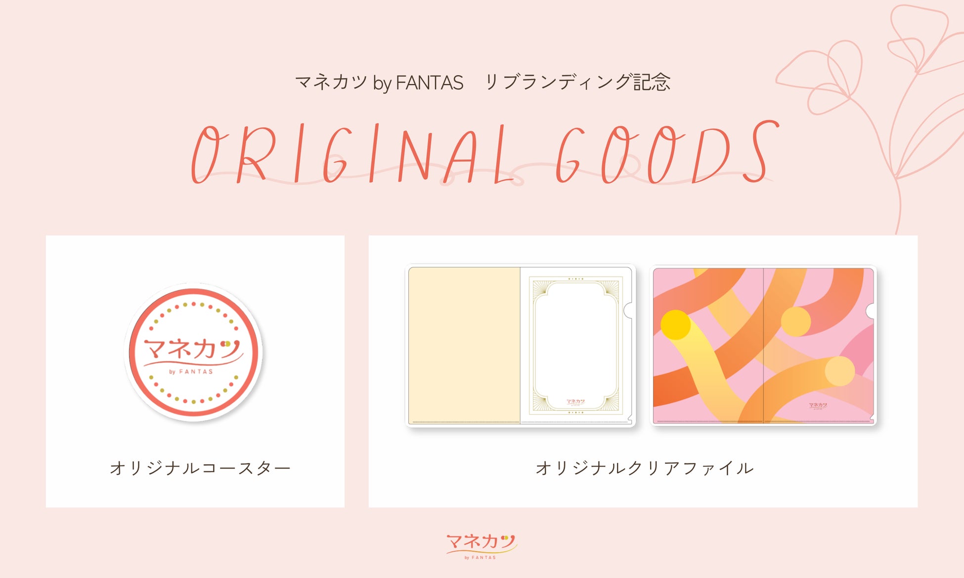 「マネカツ by FANTAS」へのリブランディングおよびブランドサイトのリニューアルを記念し、新コンセプトの世界観を表現したオリジナルグッズとして、クリアファイルとコースターを制作しました。