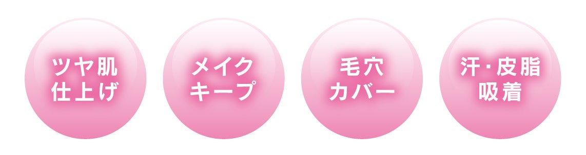 皮脂・汗を吸着するパウダーがテカリ・ベタつきを防止し、化粧崩れを防ぎます。