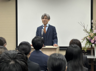 「新社会人おめでとうございます。みなさん今日起きてどういう気持ちになりましたか?今朝感じたことを、10年経っても20年経っても忘れずに、大切にしてほしいと思います。また、今日から皆さんはプロになります。仕事をして、お金という対価をいただく。プロというのがどういうものなのか、それぞれひとりひとり考えながら、日々の仕事に取り組んでもらいたいと思います。みなさんが入社したアスノシステムにはA「あそび」S「清潔」N「仲間」O「思いやり」という4つの行動指針があります。それぞれについて理解していただき、心に留めて今日からの研修、そしてその後の仕事に活かしていただければと思います。」