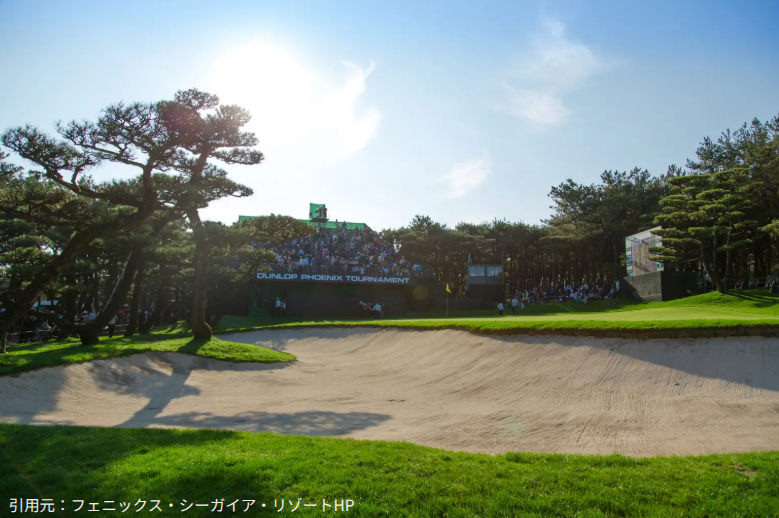 この松林に抱かれるようにレイアウトされているのが、日本屈指の名門「フェニックスカントリークラブ」です。世界のトップ100、日本のトップ3に名を連ね、1974年以来「ダンロップフェニックストーナメント」の舞台として世界中のトッププレーヤーを魅了してきました。