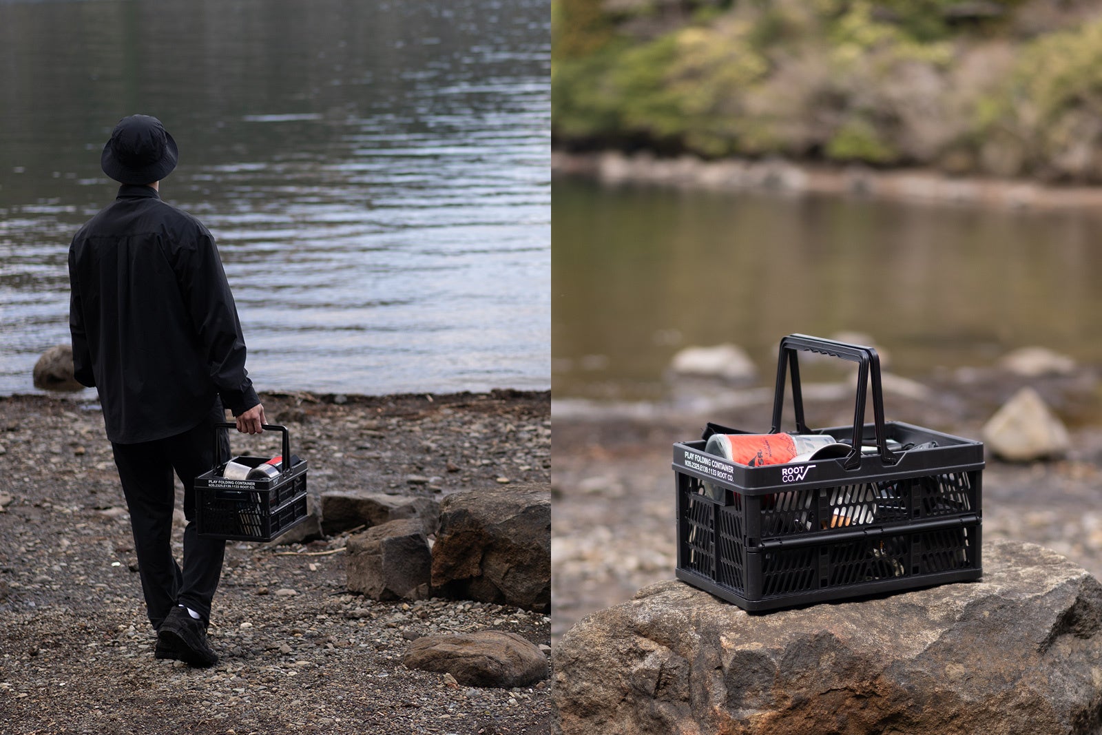 「PLAY FOLDING CONTAINER」は、キャンプやアウトドアはもちろん日常の収納にもフィットする、バスケットタイプの『軽量折り畳み式コンテナ』です。