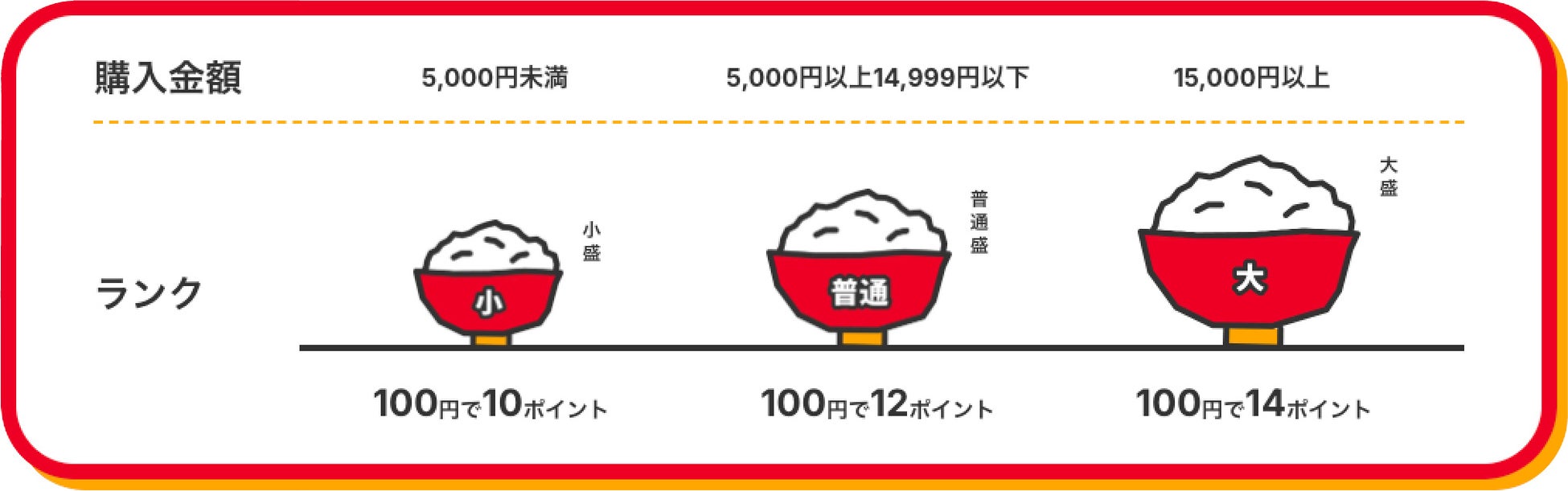 「ほっかポイント」は、ほっかアプリにて会員登録を行い、累計購入金額によって算定されるランクによって、所定のポイント倍率にて付与されます。