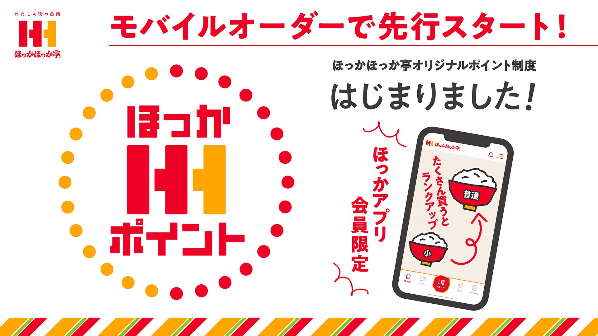 持ち帰り弁当事業のパイオニアである「株式会社ほっかほっか亭総本部」(本社:大阪府大阪市、代表取締役会長兼社長:青木 達也)は、独自のポイントプログラム『ほっかポイント』のモバイルオーダーでの先行導入を4月22日(火)11時より開始いたします。