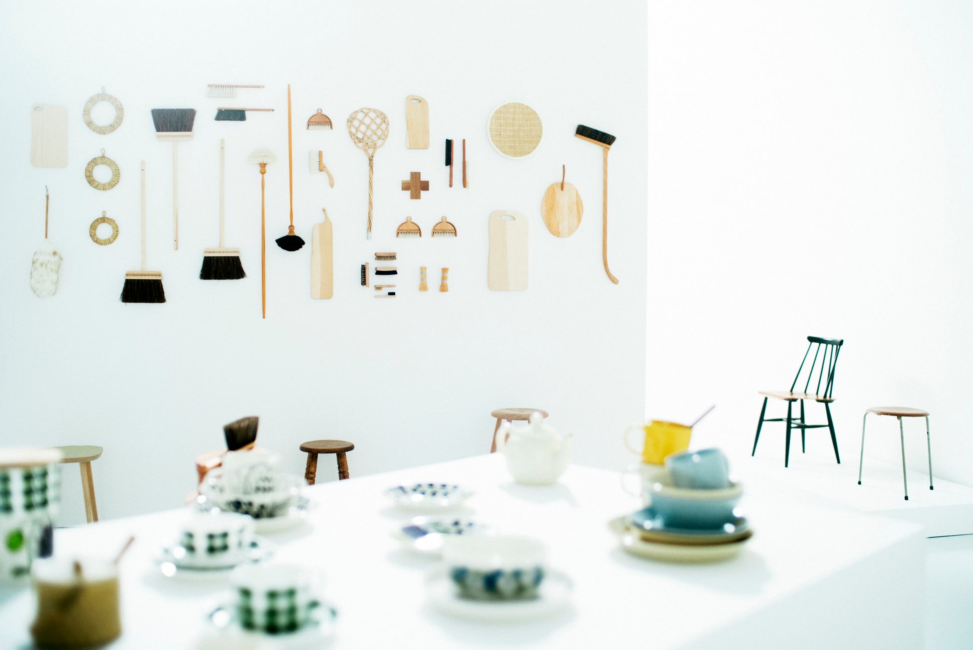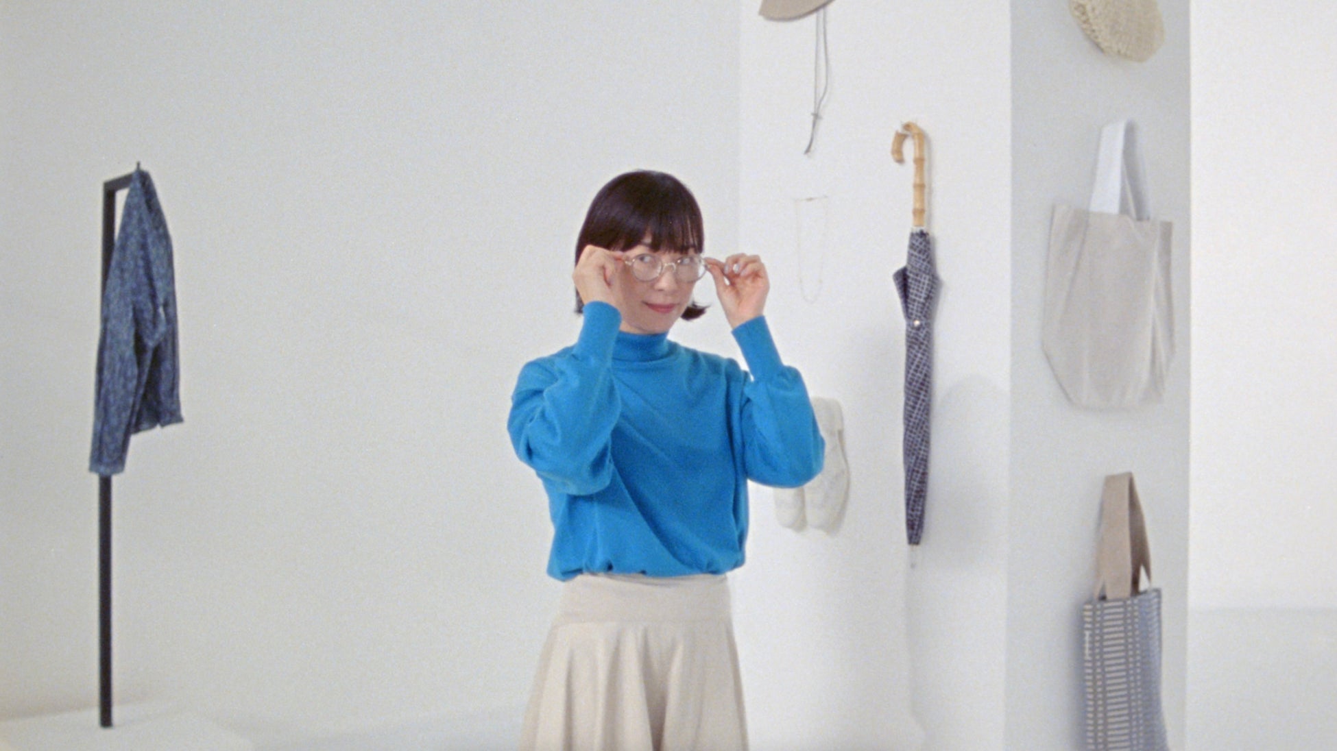 生活道具や食器、雑貨、アパレルアイテムなど「北欧、暮らしの道具店」で販売している商品約300点が並ぶ真っ白な空間の中をいきいきとした表情で巡ります。