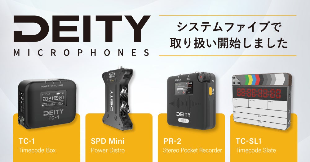 Deity Microphonesは、映画製作やコンテンツ制作、放送業務向けに高品質なオーディオソリューションを提供するブランドで、プロフェッショナルが必要とする精度と信頼性を追求しています。特に、撮影現場やライブ配信、映画制作など、音声が重要視される多様なシーンで活躍する機器を取り揃えており、グローバルで評価を得ています。システムファイブは一次販売代理店として、高品質なオーディオソリューションであるDeity Microphones製品を日本市場に提供するとともに、アフターサポートも充実させる体制を整えてまいります。