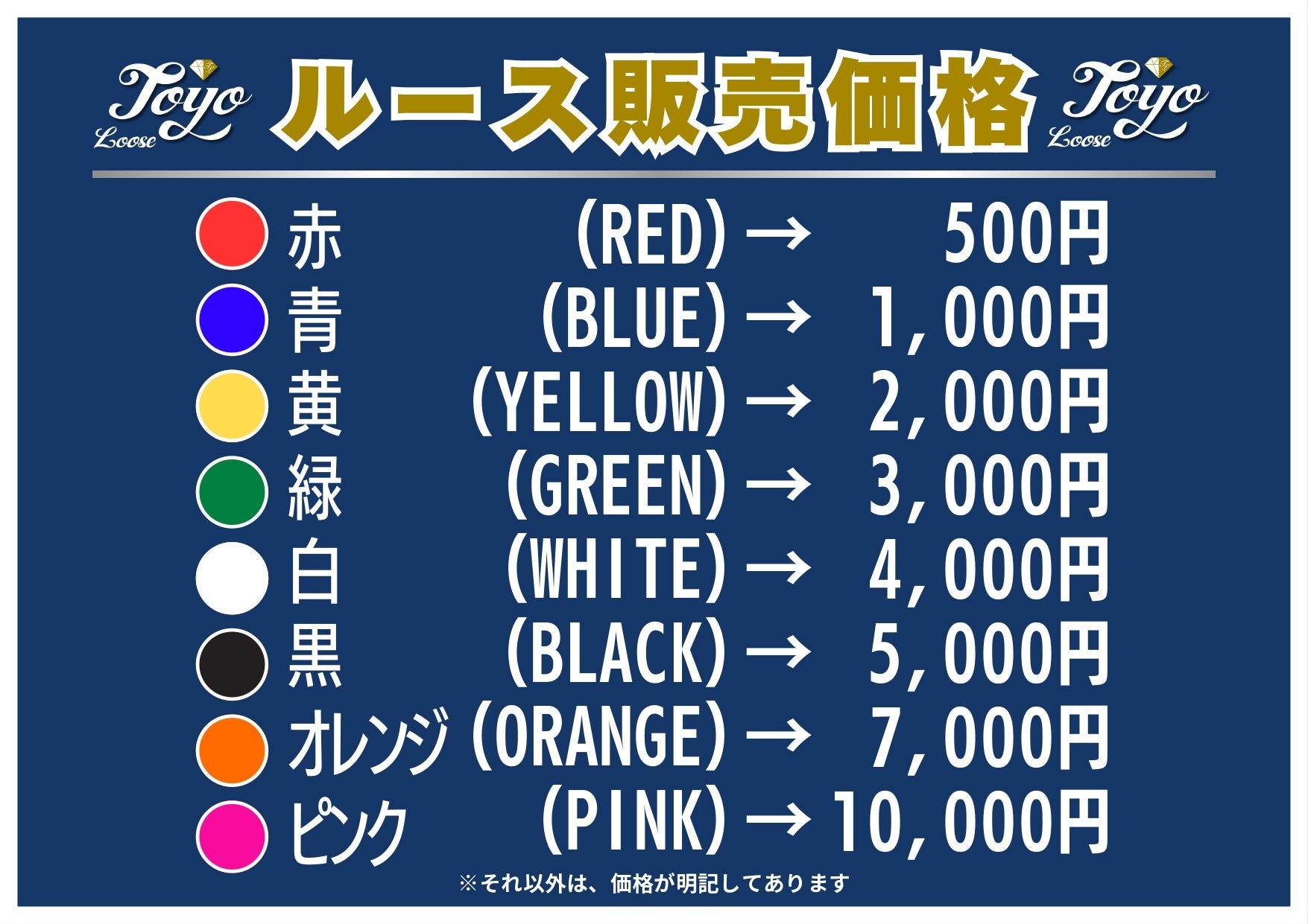 ➤ピンク: 10,000円 ※これ以上の価格帯のルースは、直接金額が記載されています。