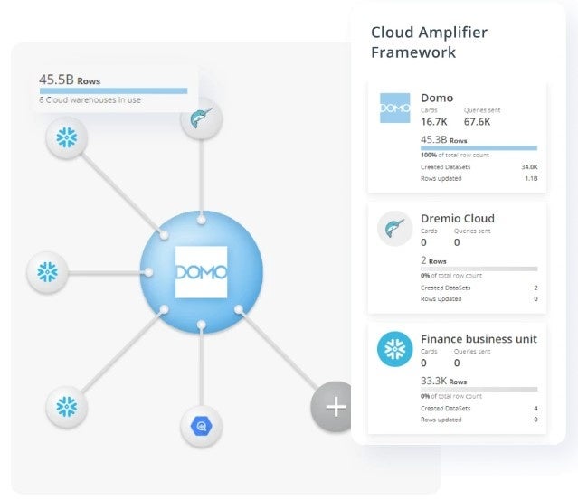 Domo(本社:米国ユタ州シリコンスロープス)は2023年3月29日、マルチクラウド・データサービス「Domo Cloud Amplifier」が強化されたことを発表しました。「Domo Cloud Amplifier」は、複数のクラウド・データプラットフォームに存在するデータを単一の仮想レイヤーを介して、より自由に活用することができます。また、Domo Cloud Amplifierを利用することで、ユーザーはより多くのデータに接続でき、データガバナンスが守られ、既存のデータおよびレポートへの投資を最大限に活かすことができます。さらに、リアルタイムに実用的なデータとインサイトを得ることで、ビジネスインパクトをもたらすことができます。