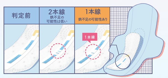 日本初※1の技術で、ナプキンの上に専用シートを“重ねて貼るだけ”で簡単に鉄不足の可能性をチェック