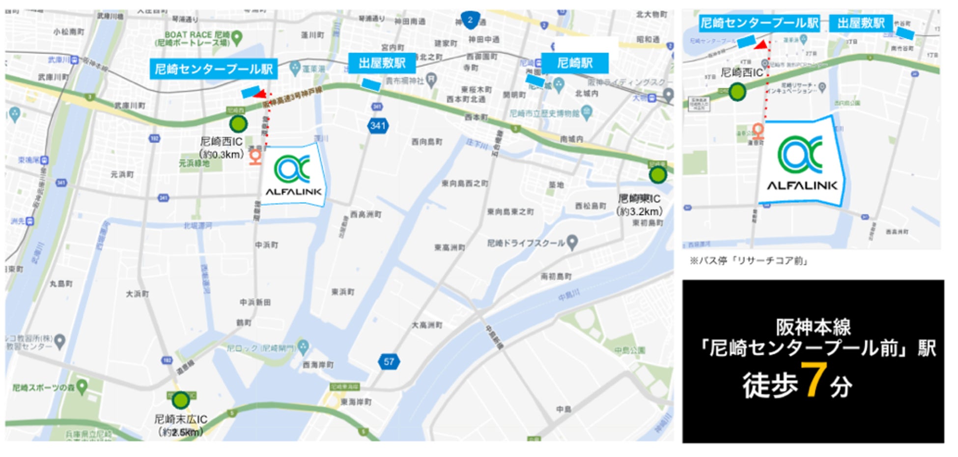 交通アクセス :神戸線「尼崎西」ICより約0.3km、「尼崎末広」ICより約2.5km