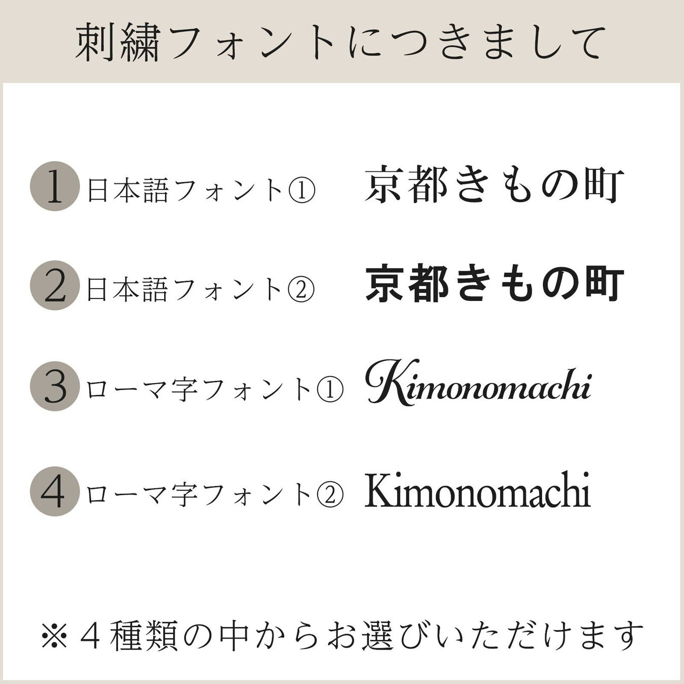 フォントは日本語フォント2種類、ローマ字フォント2種類、計4種類の中から選べます。