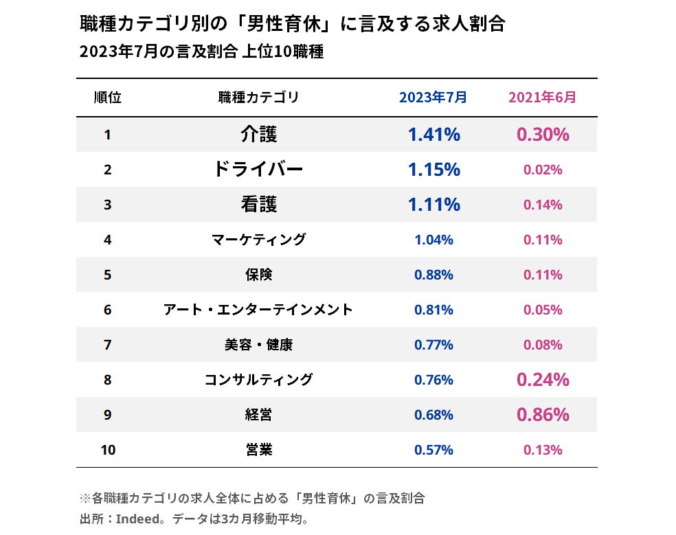 Indeed、男性育休に関する求人動向を調査。「男性育休」に言及する求人割合、「改正育児・介護休業法」成立の2021年6月から2.4倍に増加