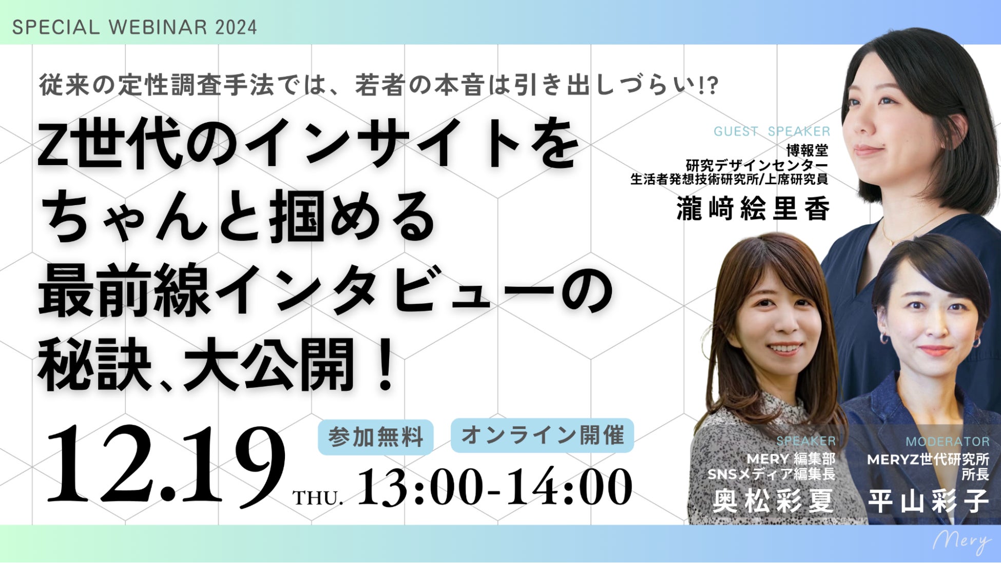 【12/19開催】『Z世代のインサイトをちゃんと掴める最前線インタビューの秘訣、大公開!』ウェビナー開催のお知らせ