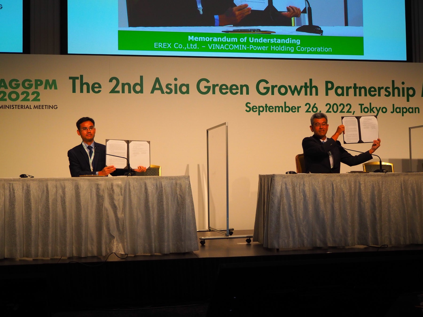 本覚書は、2022年9月26日に開催された「第2回アジアグリーン成長パートナーシップ閣僚会合」において、日本政府関係者の立ち会いの下、当社 角田知紀 取締役とビナコミンパワーのBUI MINH TAN Vice President &EOにより調印締結されました。