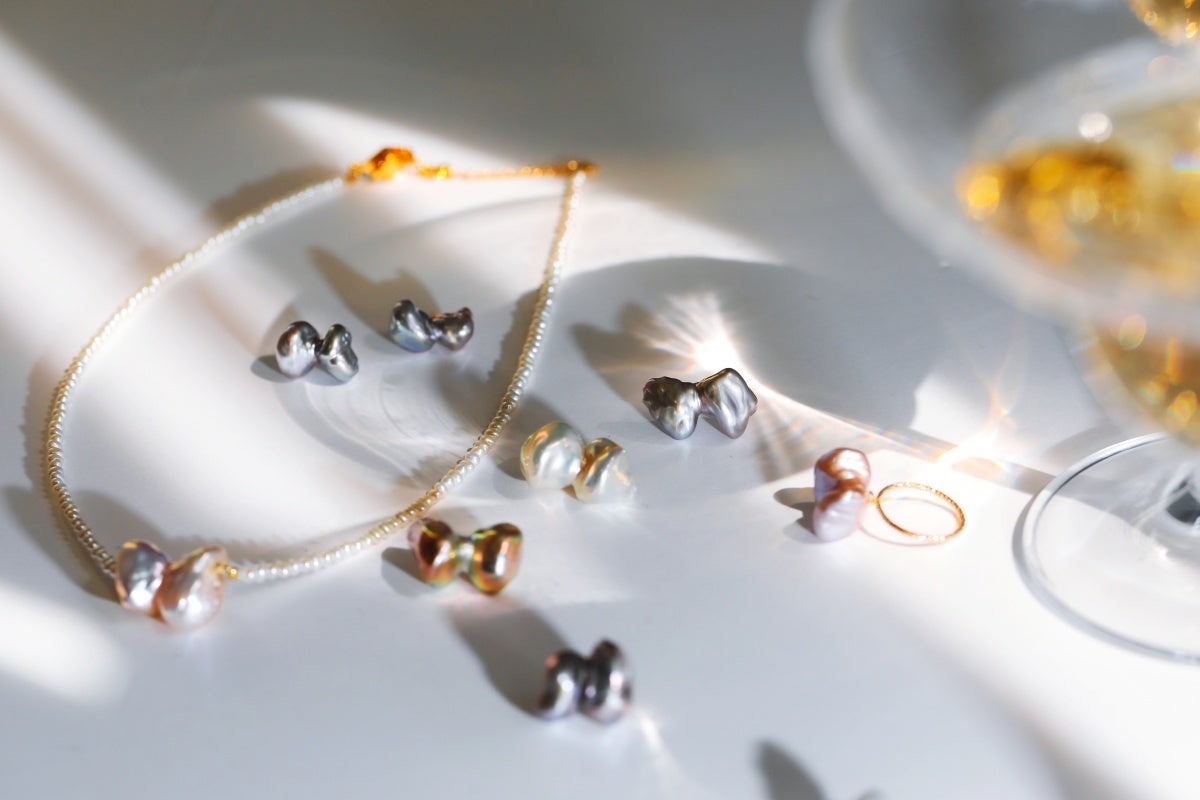 ひと粒ひと粒異なる形や色をもつバロックパール。
