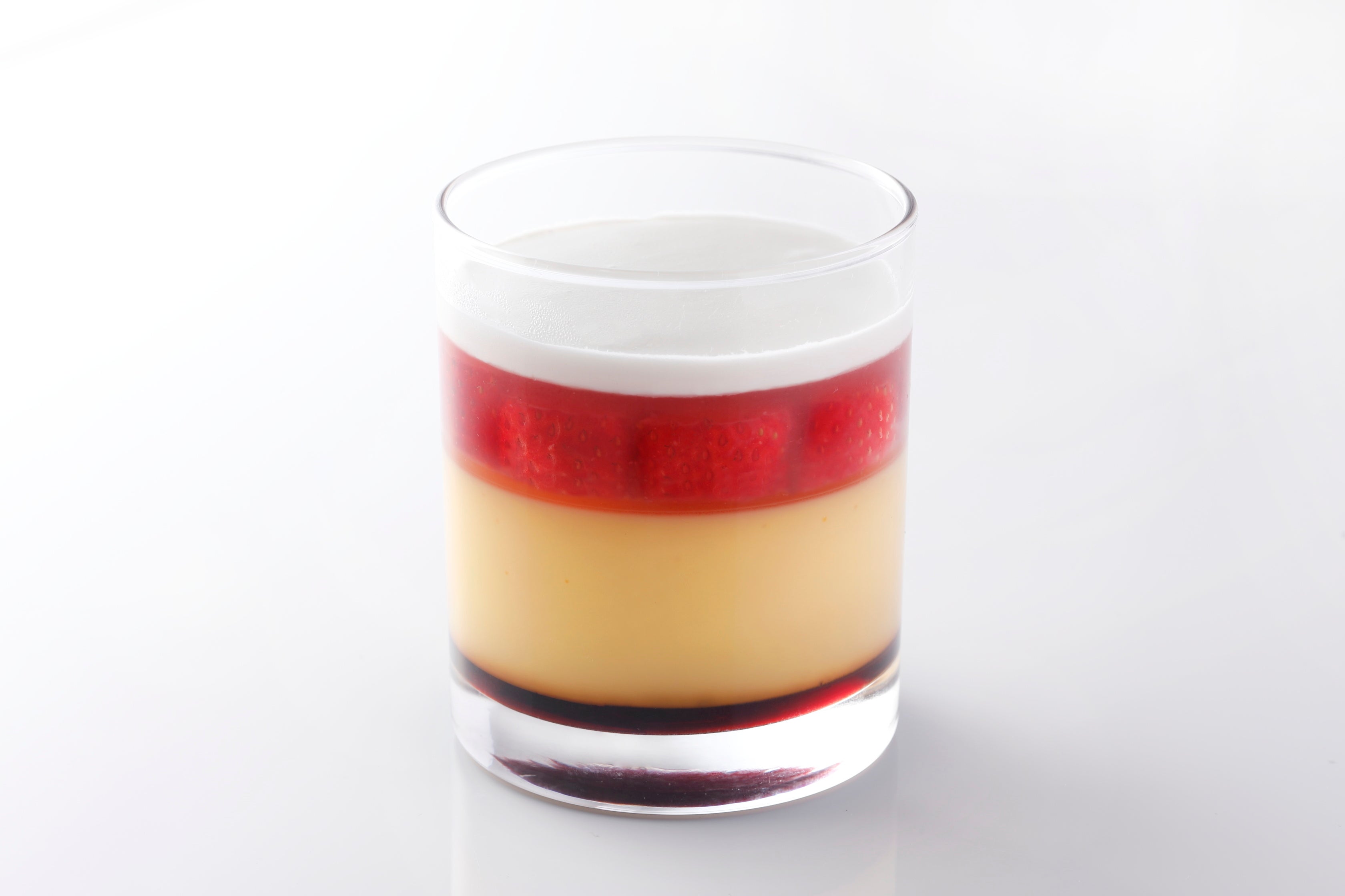 クリーム・プリン・カラメルの調和が心地よい滑らか食感のプリンに「博多あまおう® 」の甘みを閉じ込めた層をプラス。