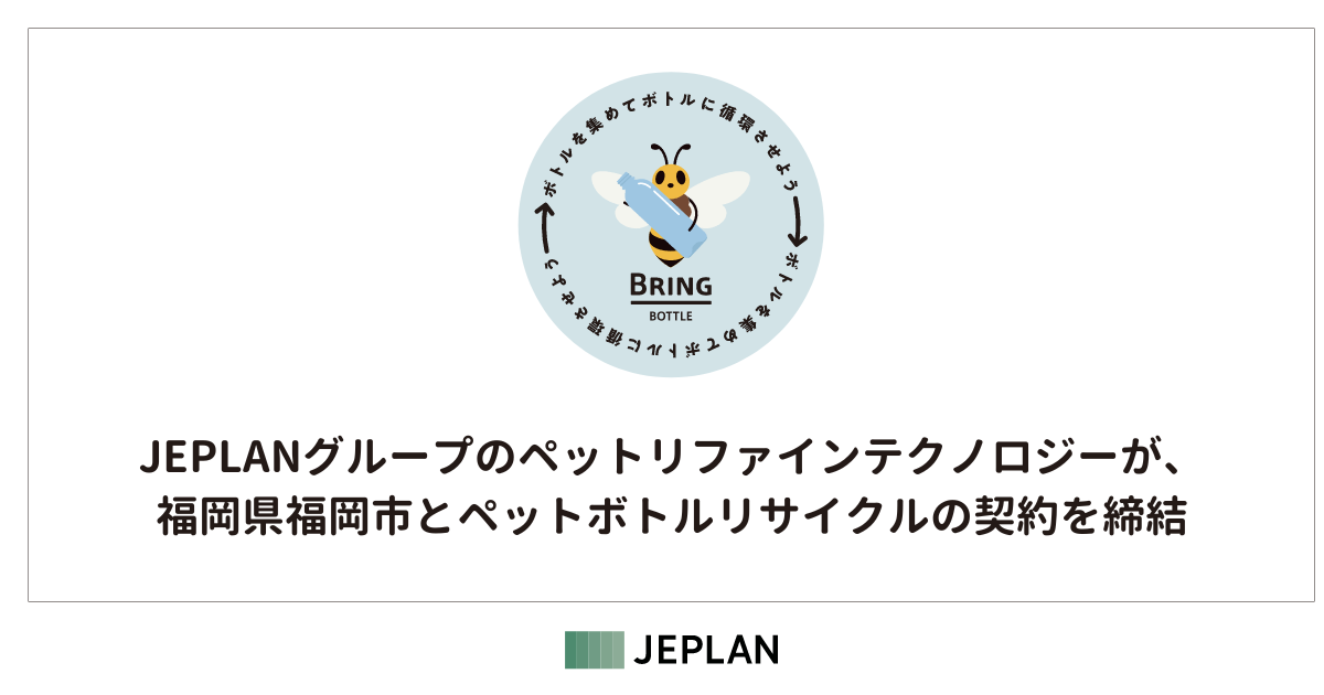 JEPLANグループのペットリファインテクノロジーが、福岡県福岡市とペットボトルリサイクルの契約を締結