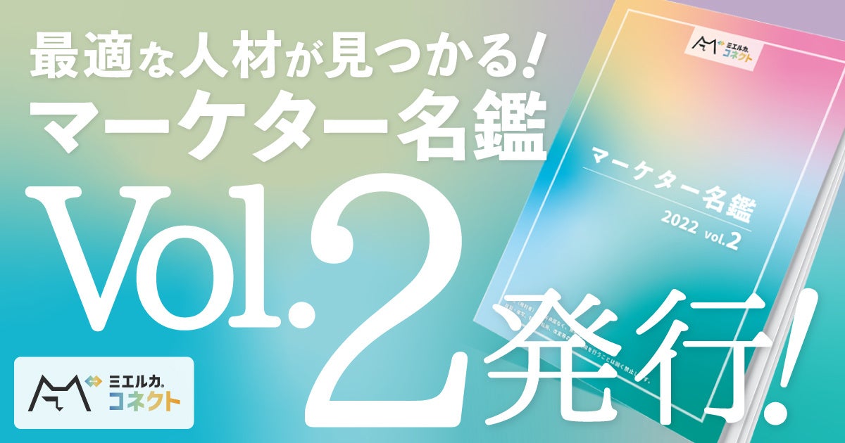 約1,700社のWebマーケティングを支援中の株式会社Faber Company(ファベルカンパニー/本社:東京都港区、代表取締役:稲次正樹・古澤暢央)は、Webマーケティング専門の人材マッチングサービス「ミエルカコネクト」において、厳選マーケターを紹介する「マーケター名鑑vol2」を発行したことをお知らせいたします。