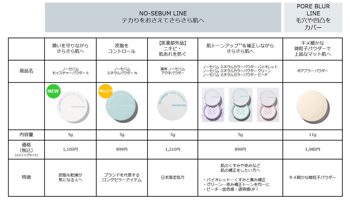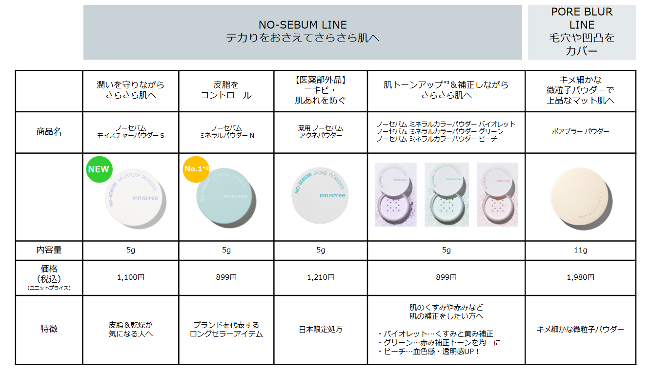 イニスフリー パウダー Item Lineup
