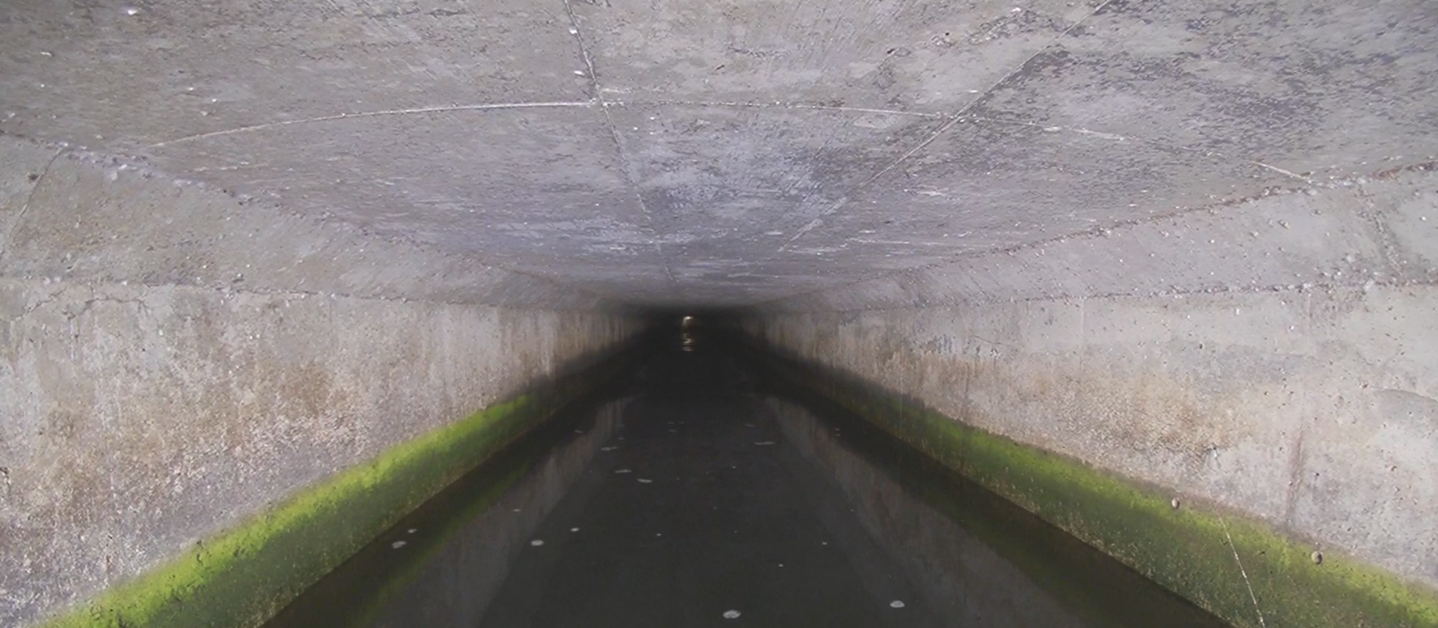流域流下水道管渠の調査では、海岸のボックスカルバートからIBIS2を進入させることで内部の調査を進め、全体のうち約300mは、1度の飛行で調査を終えることに成功いたしました。