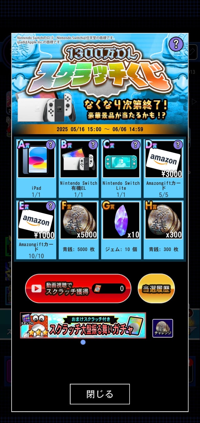 5. NintendoSwitchなど人気のゲーム機が当たる記念スクラッチ開催!