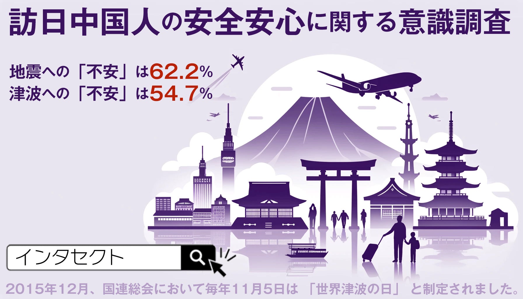 インタセクト、「訪日中国人の安全安心に関する意識調査統計」 地震への「不安」は62.2% 津波への「不安」は54.7%