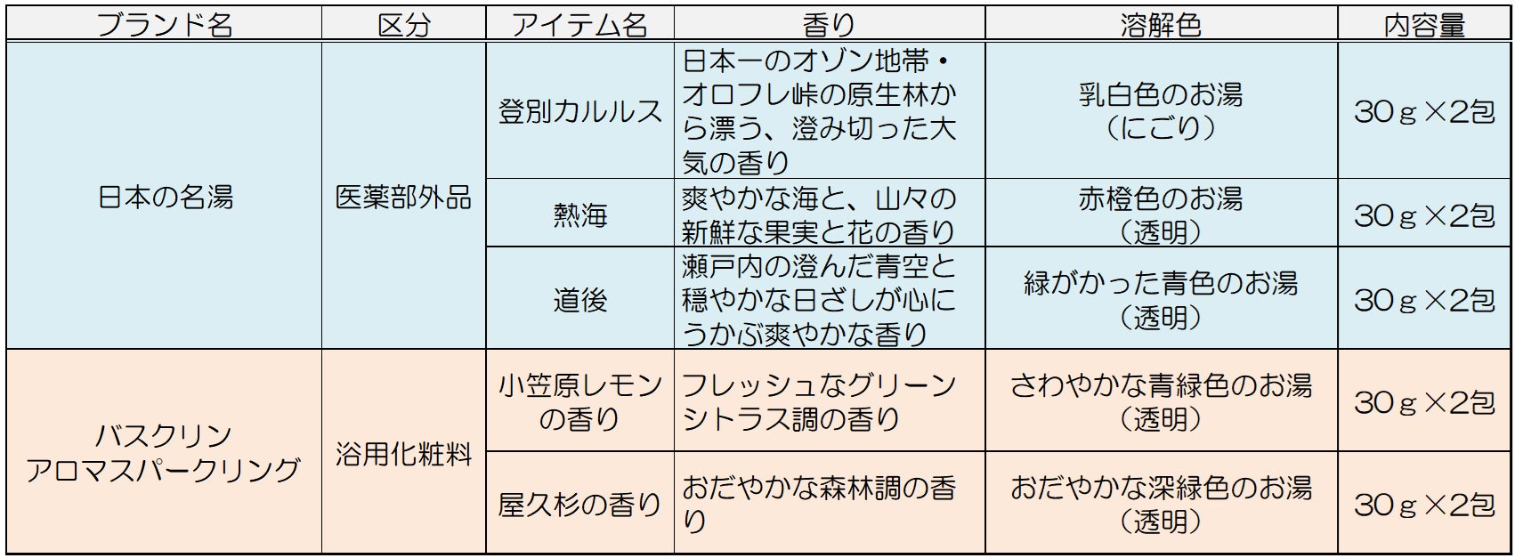 「日本の名湯」と「バスクリン アロマスパークリング ナチュラルバス」シリーズから厳選したアソートセット
