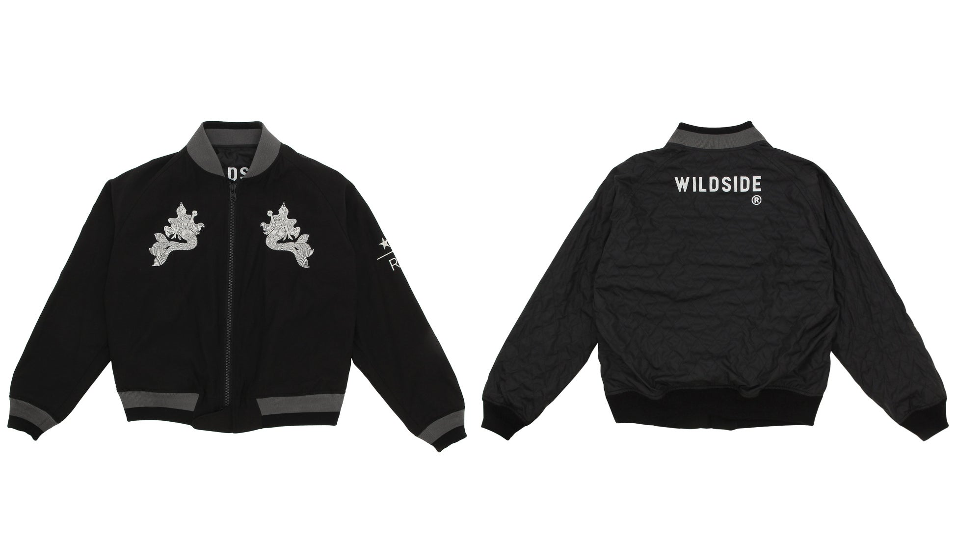 スターバックスのシンボル“サイレン”モチーフを、WILDSIDEの解釈でデザインしたスーベニアジャケットです。前面、背面には“サイレン”の刺繍が施されています。リバーシブル仕様になっており、内側にはWILDSIDEロゴをデザインしています。
