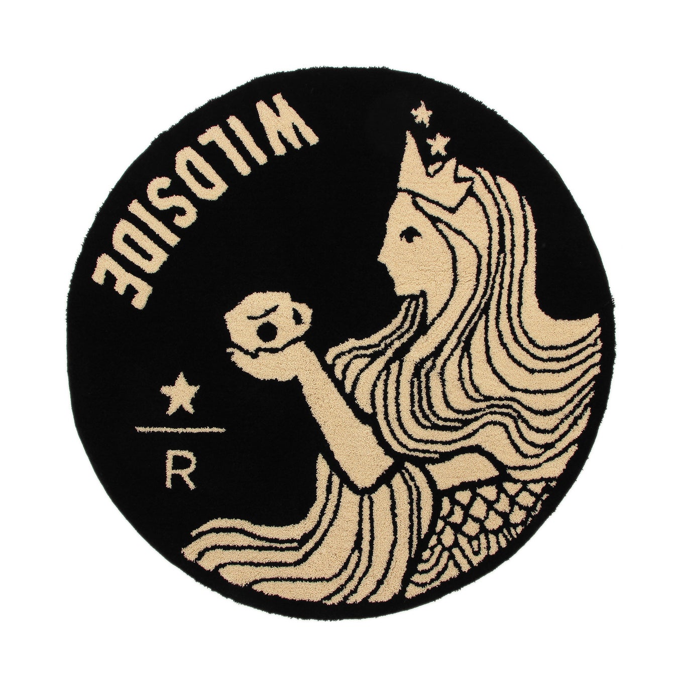 スターバックスのシンボル”サイレン”モチーフを、WILDSIDEの解釈でデザインしたラグマットです。ラグマットは日本でも数少ないハンドメイドラグファクトリーである、株式会社三好敷物が運営するオリジナルラグブランド「MIYOSHI RUG」が、タフティングガンを用いて1点ずつ手作業で製作しています。