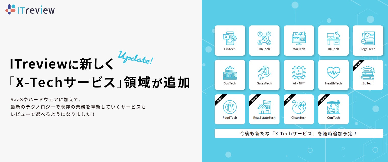ITreview、X-Techサービスのカテゴリーを新設。FinTechやHRTech、AIなど最新テクノロジーサービスでレビューを収集・公開