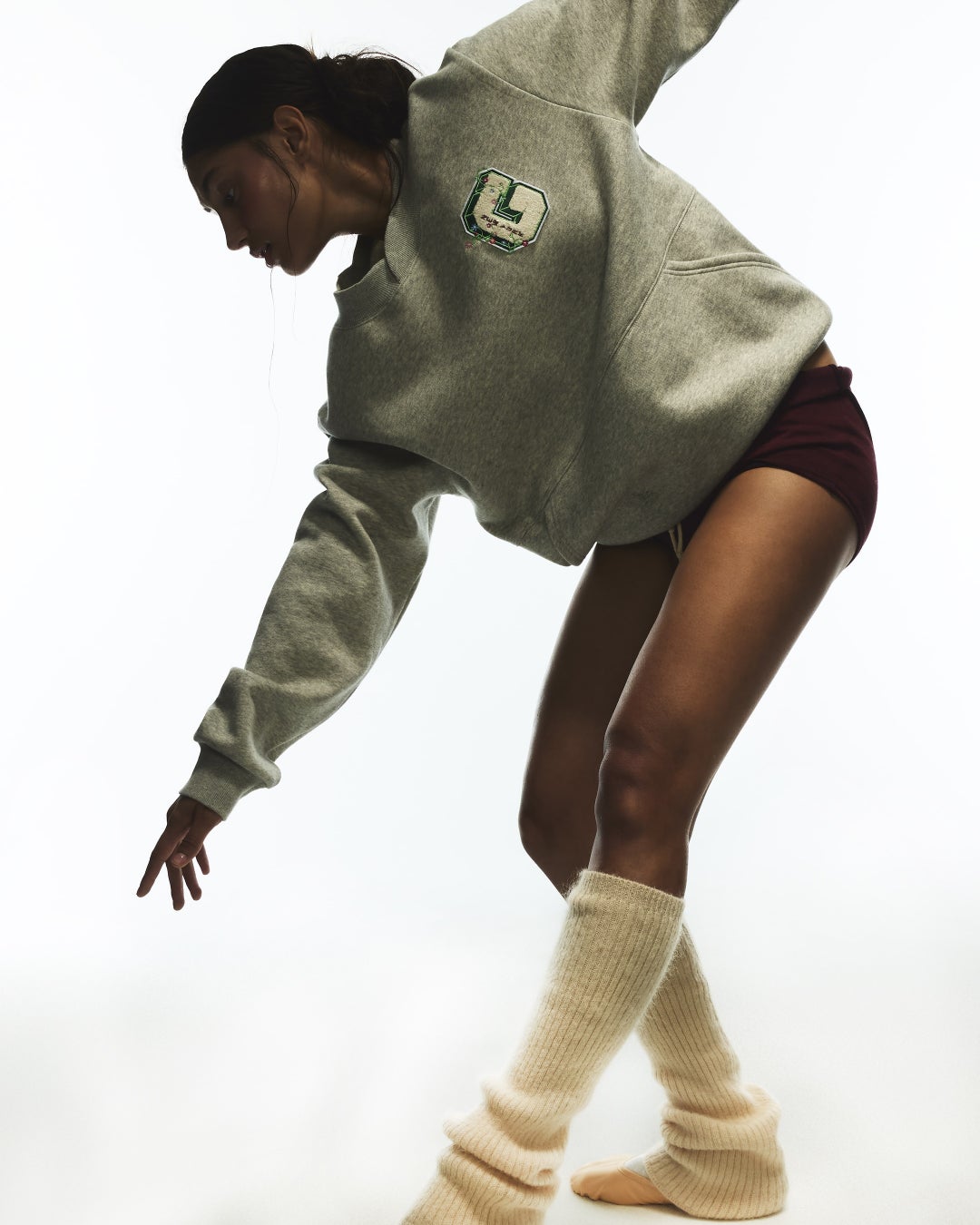 Guizioが手がける女性らしいシルエットのデザインは、世界的に著名なセレブリティやインフルエンサーから広く支持されております。第二弾は、Guizioの先進的でユニークなデザインと、チャンピオンの歴史の中で培ってきたクオリティと機能性を融合して誕生したコレクションです。Championのヴィンテージウィンドブレーカーからインスピレーションを得たスタンドカラーのジップジャケットや今回のコラボレーション限定の「N.Y. Champion® Guizio」のロゴとイチゴを組み合わせてデザインしたユニークなグラフィックの刺繍入りの「Reverse Weave®(リバースウィーブ®)」製法を採用したクロップド丈のフーデッドスウェットシャツの他、クルーネックスウェットシャツ、ロングスリーブTシャツ、ショーツなどアイコニックなアイテムを全5型を展開いたします。
