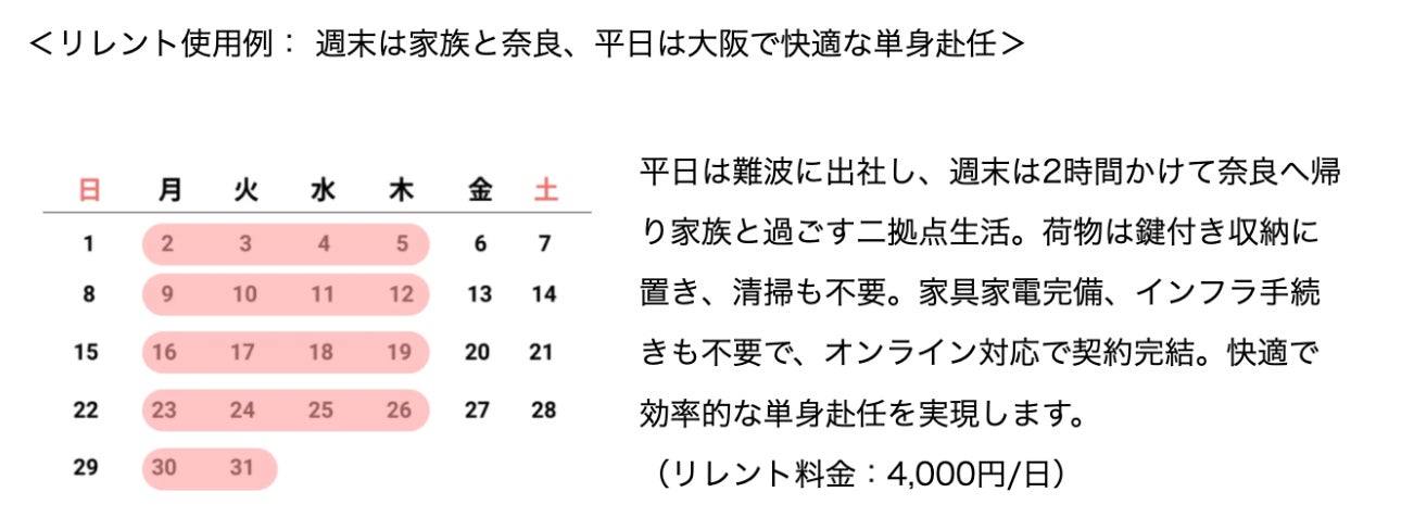 掲載物件は家具・家電・日用消耗品やインフラを完備しています。住む頻度や期間に合わせて、スムーズにお部屋探しを行うことができます。またお部屋探しから内見、契約までをワンストップでオンラインで完結できるため、入居に関する手続きも簡単に行うことができます。