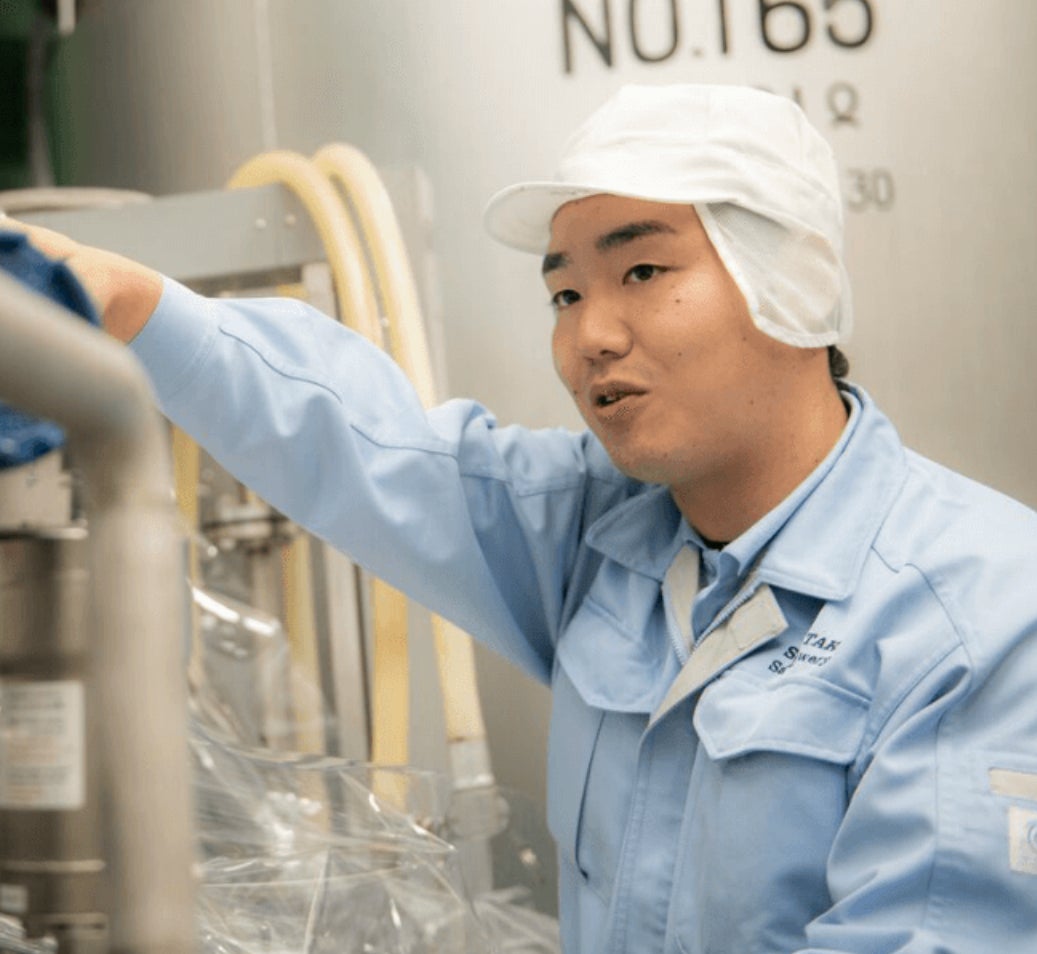 「『弐光』の開発は、私の酒造歴の中でもかなり難しい1本でした。新商品のコンセプトと目指す酒質イメージを共有いただいた後、どう実現させるか長い時間悩みましたが、SAKE HUNDREDの生駒さんや商品開発責任者とも具体的に相談しながら、まずはひとつひとつを理論的に構築していきました。その後の実際の造りのフェーズでも、酒母や醪の日々の変化を追いながら調整を繰り返す、まさに毎日が勝負でした。出来上がったお酒は社内の評判も非常に高く「果汁を飲んでるみたいに美味しい」という声があがっています。僕自身も、味わいに感動しています。今回、原料に米ぬかを使う挑戦もしています。10回以上試験を行い、SAKE HUNDREDとだからこそ実現できました。今後、サステナブルな社会における取り組みの一環として、良いモデルケースになればと思います」