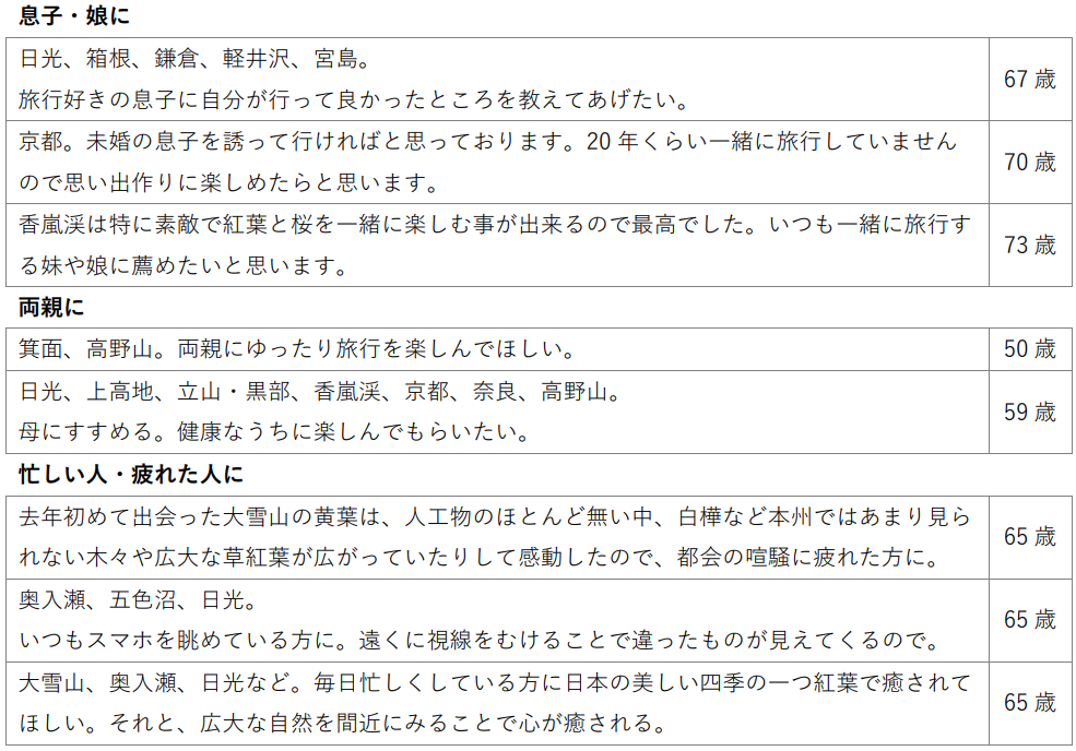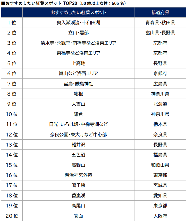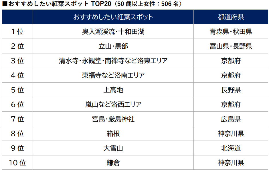 知識や経験豊かな50歳以上が薦める紅葉スポット