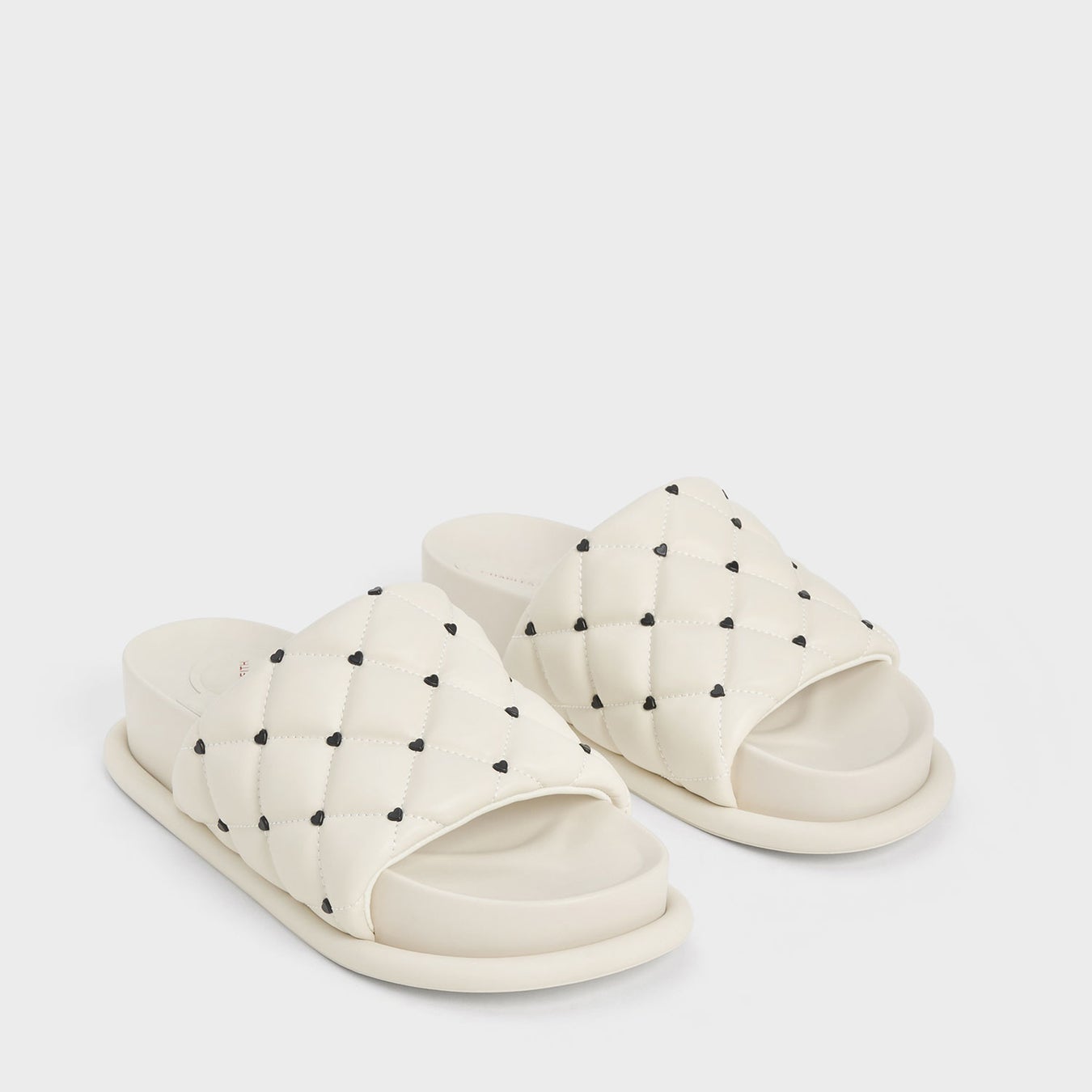 商品名:Dahlia ダリア パッドキルトハートプリントサンダル