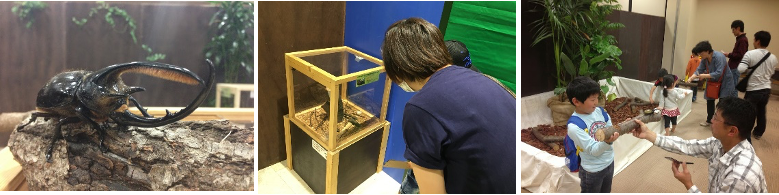 大小さまざまな生きた昆虫を15種類ほど展示予定!大人気ヘラクレスオオカブトを間近で触ったり、写真がとれるふれあいコーナーもございます。