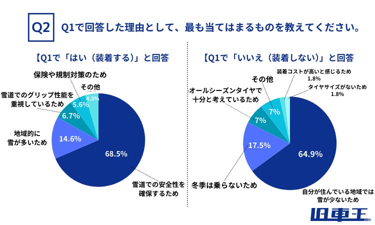 また、「オールシーズンタイヤで十分と考えているため」が7%にとどまり、「装着コストが高いと感じるため」(1.8%)や「タイヤサイズがないため」(1.8%)といった理由は少数派でした。