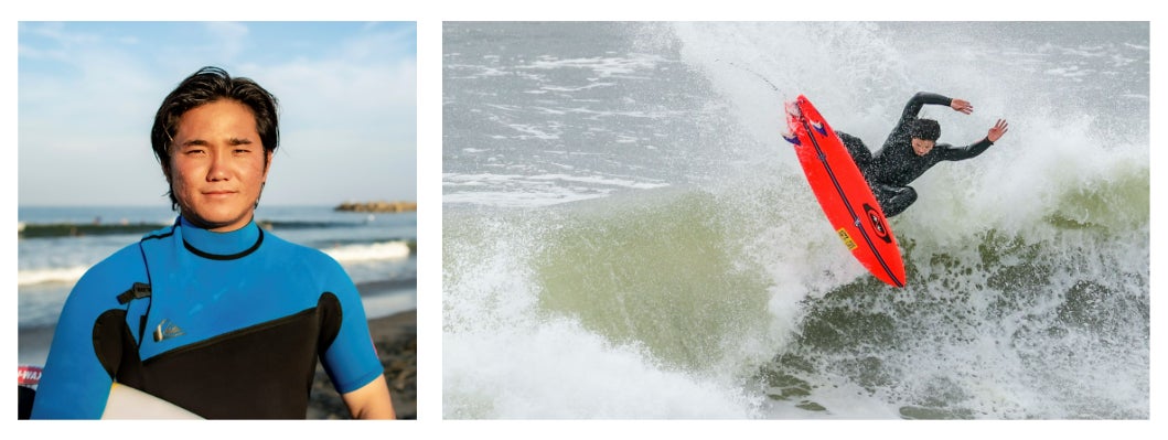 6歳から地元・三重でサーフィンを始め、日本および海外での大会で輝かしい成績を残す。