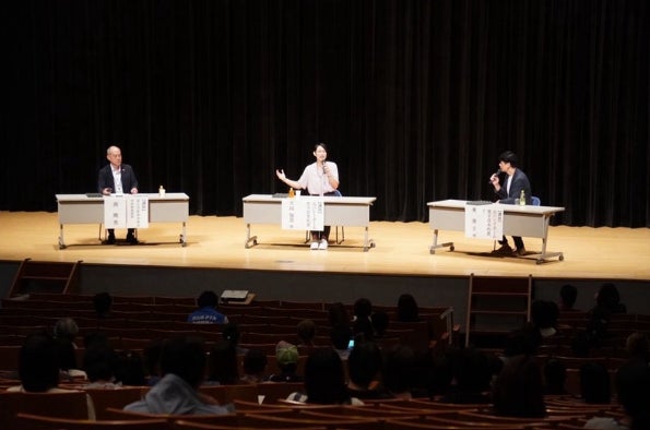 説明会後半では、元女子バレーボール日本代表・大山加奈氏、元男子ハンドボール日本代表・東俊介氏、流山市教育委員会部長・南暁男氏による特別講演がパネルディスカッション形式で行われました。