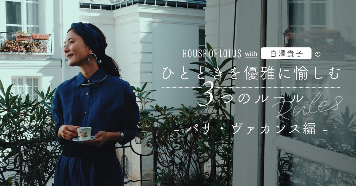 【HOUSE OF LOTUS】人気エディター白澤貴子さんが提案する特別企画「ひとときを優雅に愉しむ3つのルール ~パリ・ヴァカンス編~」を公開